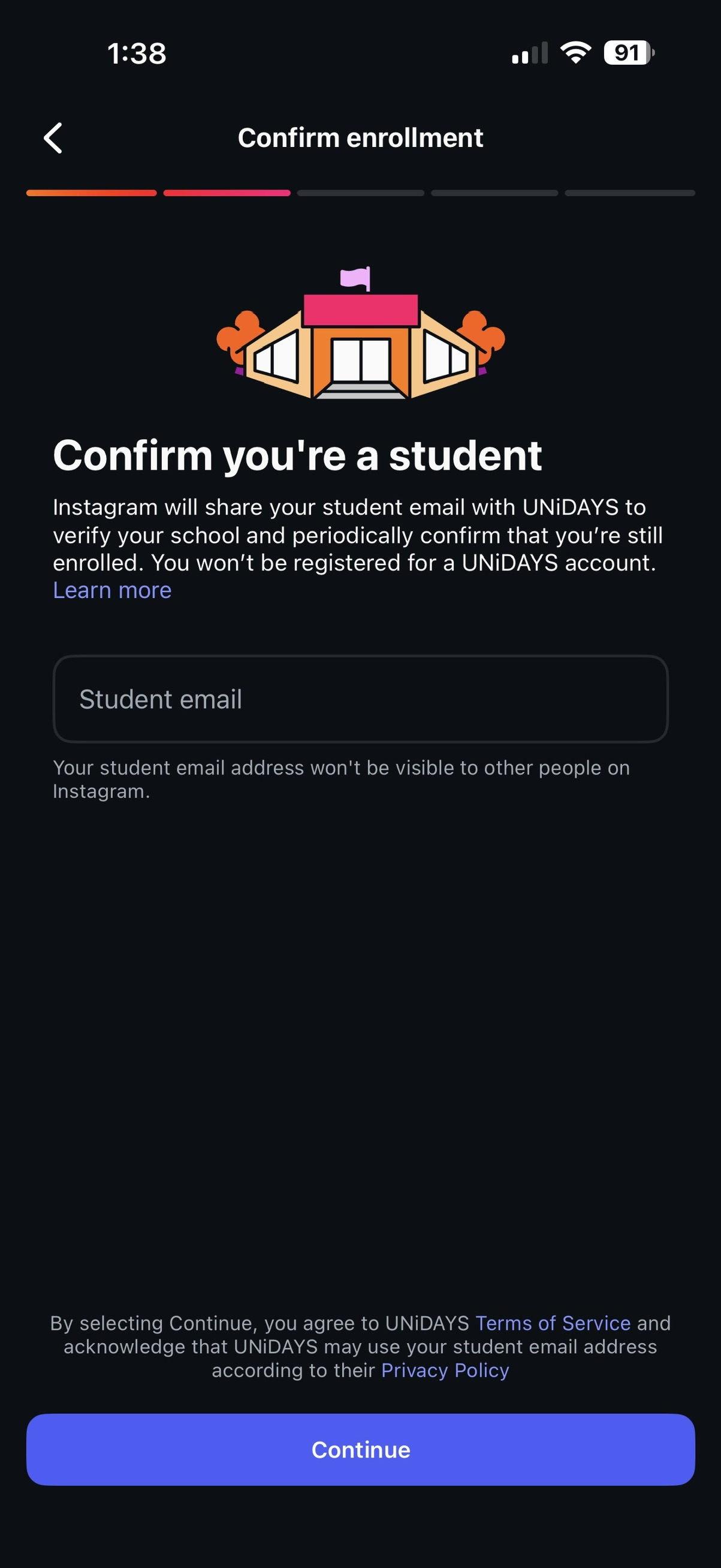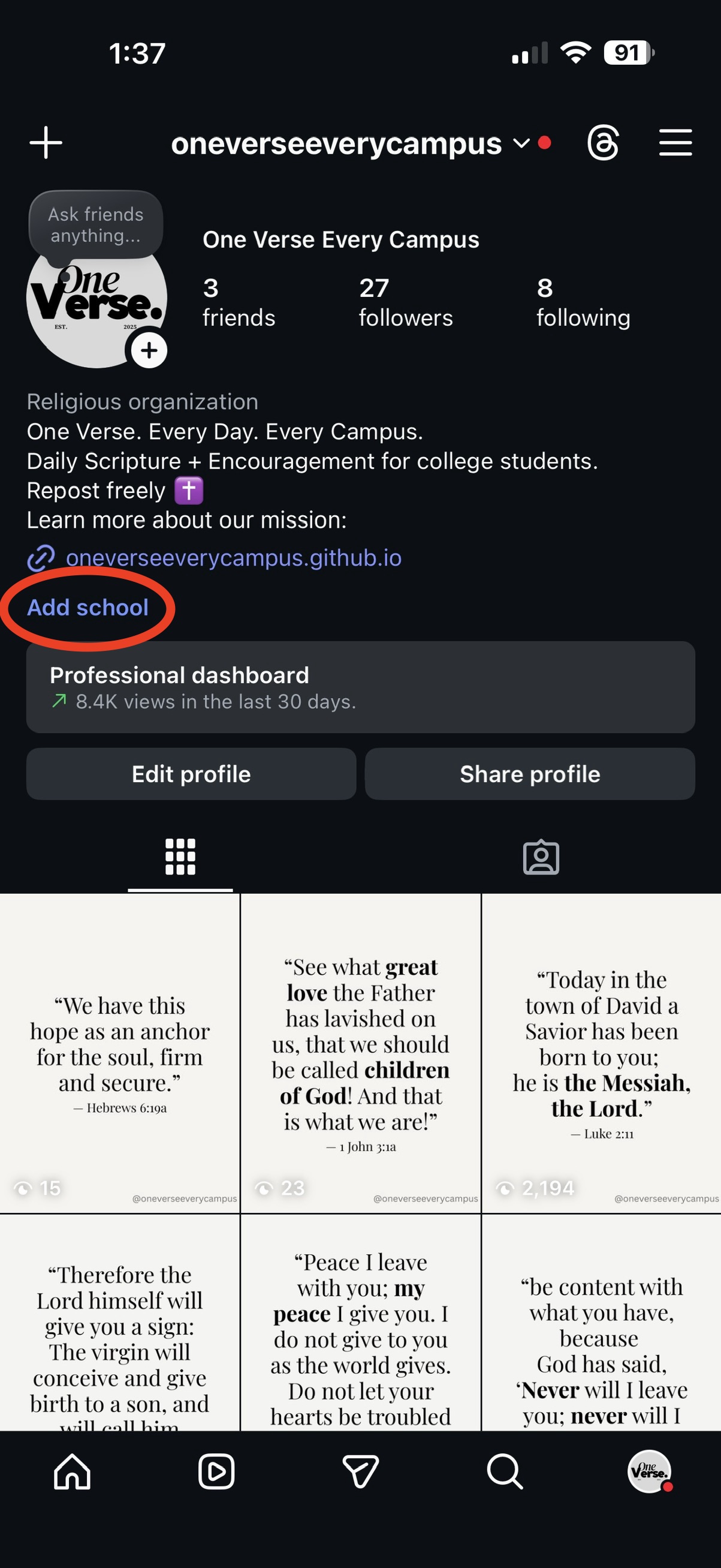 NOTE: If you do not see this option, Instagram likely has your account flagged as a non-student, which has no direct fix. Instagram states that teachers, alumni and other adults can't add schools on Instagram.
