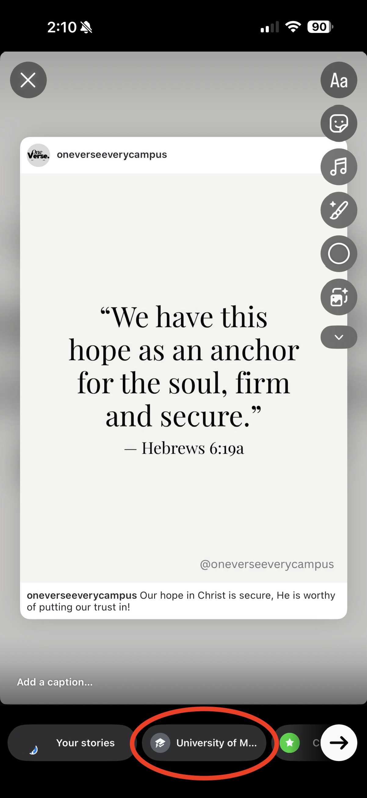 account whenever it feels appropriate by choosing your school's story option when posting a story.